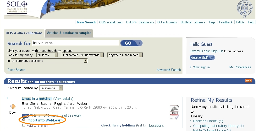 3 Search for “Linux in a Nutshell” and import into WebLearn