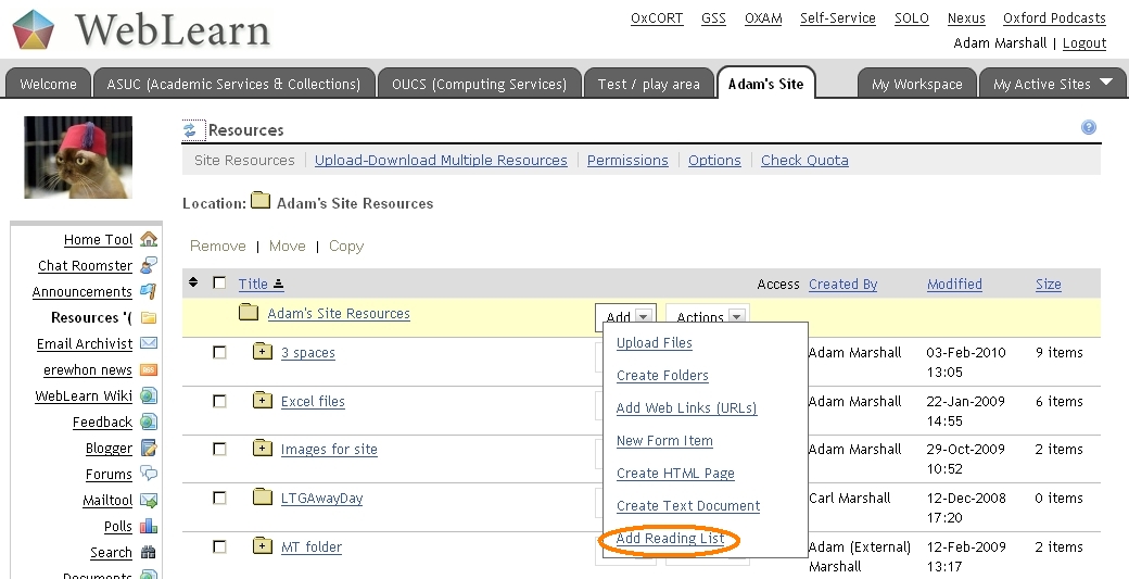 The Sir Louie project will integrate the Bodleian Libraries’ SOLO search interface with the Reading List tool; this tool is part of the Resources tool.