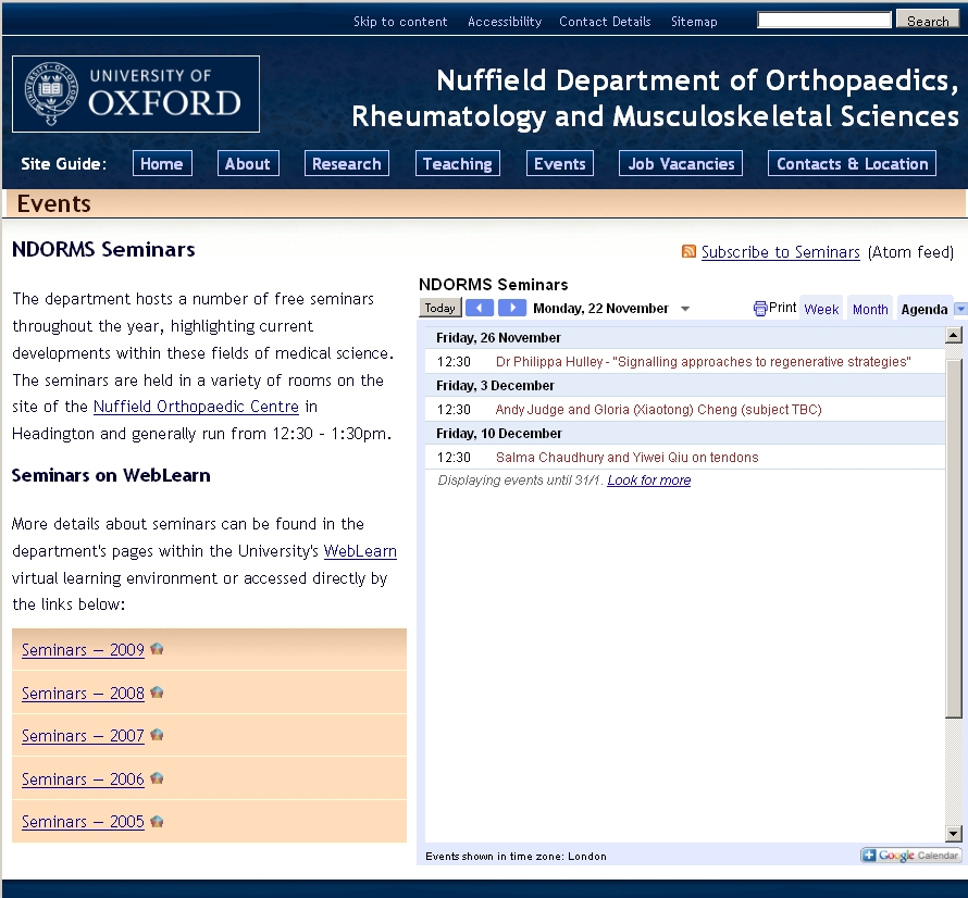 Some users are taking advantage of WebLearn’s ability to export calendars in ‘iCal’ format and are syndicating their calendars to departmental intranets or public websites.