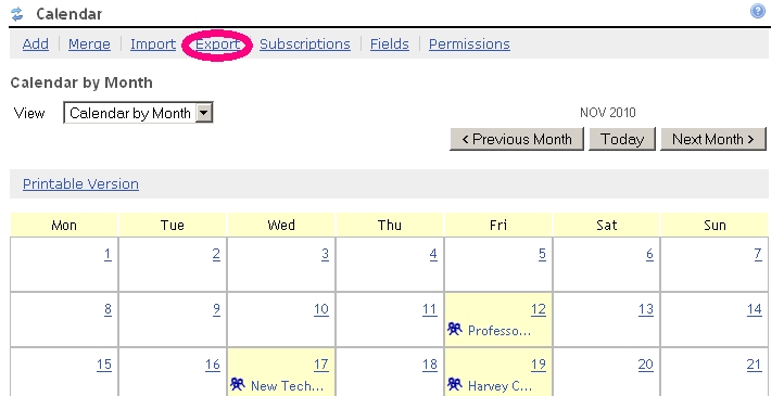 They have a WebLearn site within which resides a calendar of seminars and have generated a public iCal feed of the site’s calendar by clicking on the ‘export’ link within the menu of tool options.
