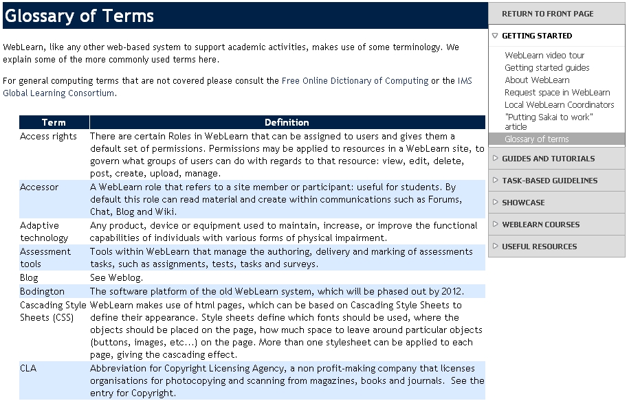 2012 sees the introduction of a brand new look for the WebLearn Guidance Site.