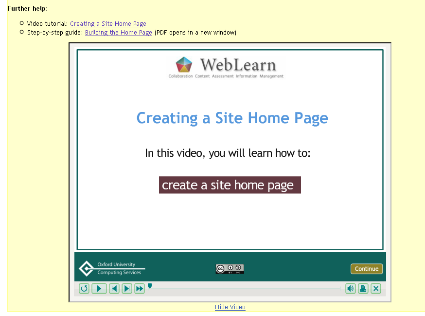 We intend to evaluate the use and usefulness of these templates and would like you to share your experience of using them. Please send your comments and suggestions to weblearn@oucs.ox.ac.uk.