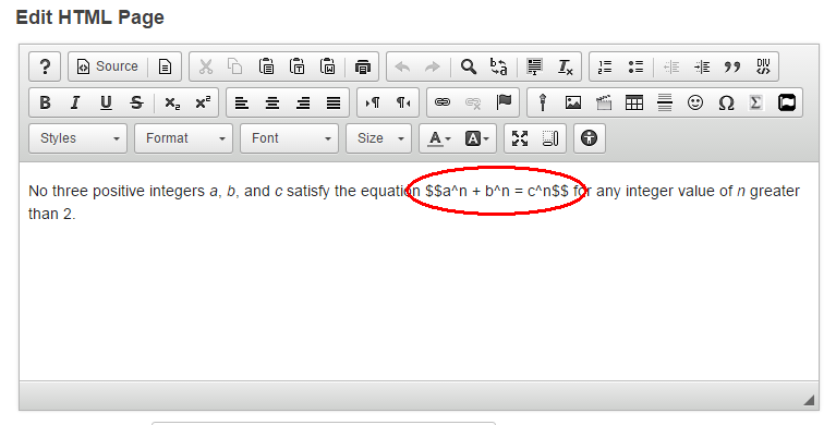 Once LaTeX has been enabled on a site and in a tool, one can easily add mathematical notion by enclosing equations and the like between two sets of $$.