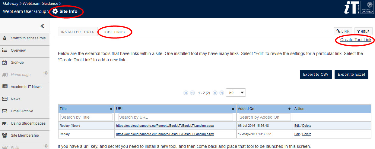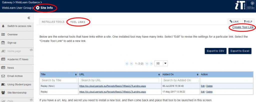 - Additional ‘Joinable Sites’ options have been enabled – you can now specify whether Joinable Sites can be joined by any logged in user or just by users with an Oxford SSO account.
