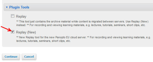 - Tick the check box next to Replay and click Continue button.
