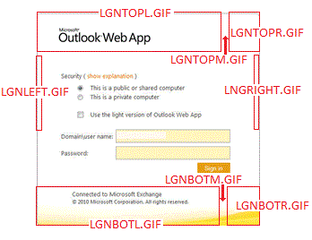 The ‘version’ part will vary dependent on service pack revision. Exchange 2010 SP1, for example, is 14.1.218.13. Bear in mind that the same GIF files are also used at logout, so there is no need to do this work twice.