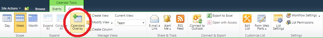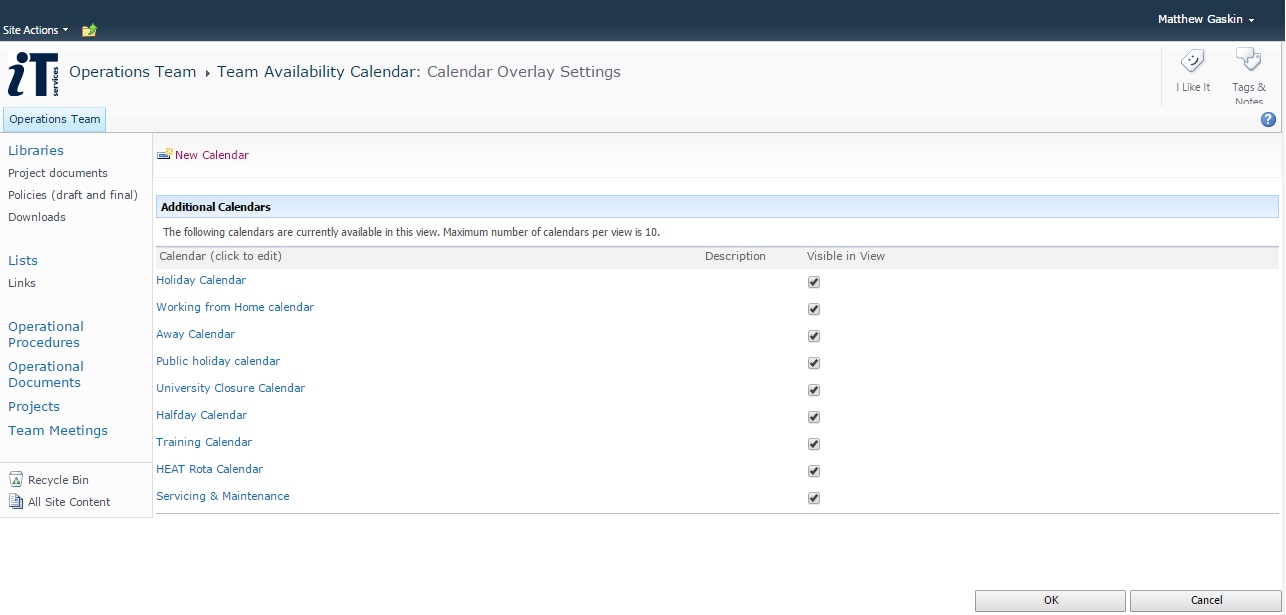 Now we need to take all of the calendars you’ve created and overlay them. Each one will have its own colour-code, with the available choices dependent on the theme you have for your SharePoint site.