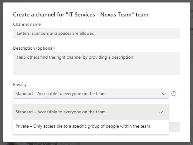 Microsoft have finally started to deploy support for Private Channels within the Teams application, allowing you to share content with a subset of a Team’s members. This is described as ‘rolling out’ in their roadmap here.