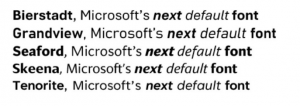 The choices are shown in the graphic below. Sadly, despite a few wags already suggesting them, Times New Roman, Wingdings, and Comic Sans are not going to make the cut as the new default.