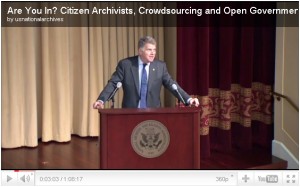 The RunCoCo project has been diverted from this blog with our own community collections: Woruldhord, Erster Weltkrieg in Alltagsdokumenten – and with preparing for our forthcoming conference Beyond 2011: Crowdsourcing for public engagement. However I felt RunCoCo must briefly point to this excellent programme from David S. Ferriero the Archivist of the United States: ‘Are you in? Crowdsourcing and Citizen Archivist’ who is joined by the panel: