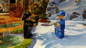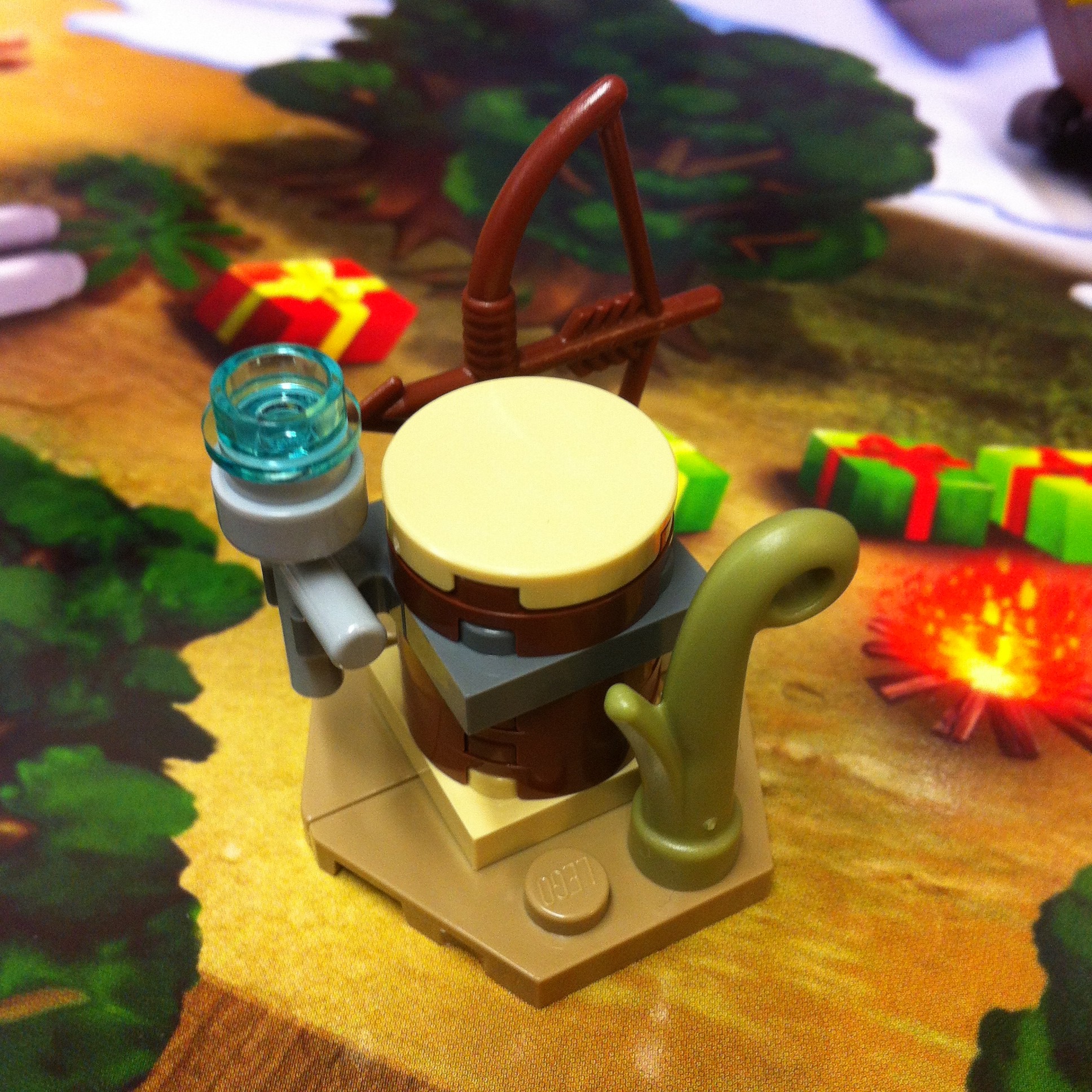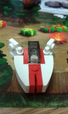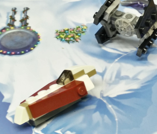 The Albino Chewbacca is decked with festive decoration – his bandolier is painted red and green. He comes with a snazzy new bowcaster which fires off snowballs (1×1 studs) which is always a great weapon to have. He also comes with two miniature pine trees and some spare snowballs.