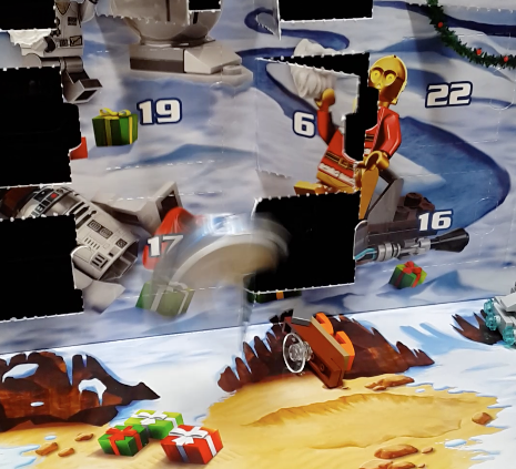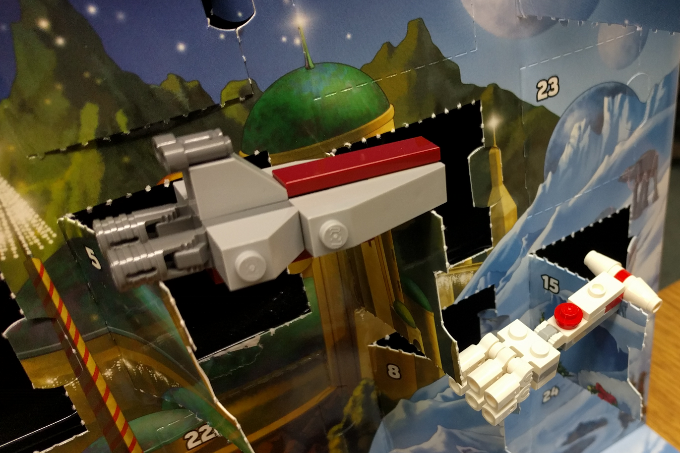 The rules remain the same, each day one door will be opened, and one brave Jedi will do battle with fiddly little pieces of plastic, and then triumphantly append a photo of their finished masterpiece to this post.
