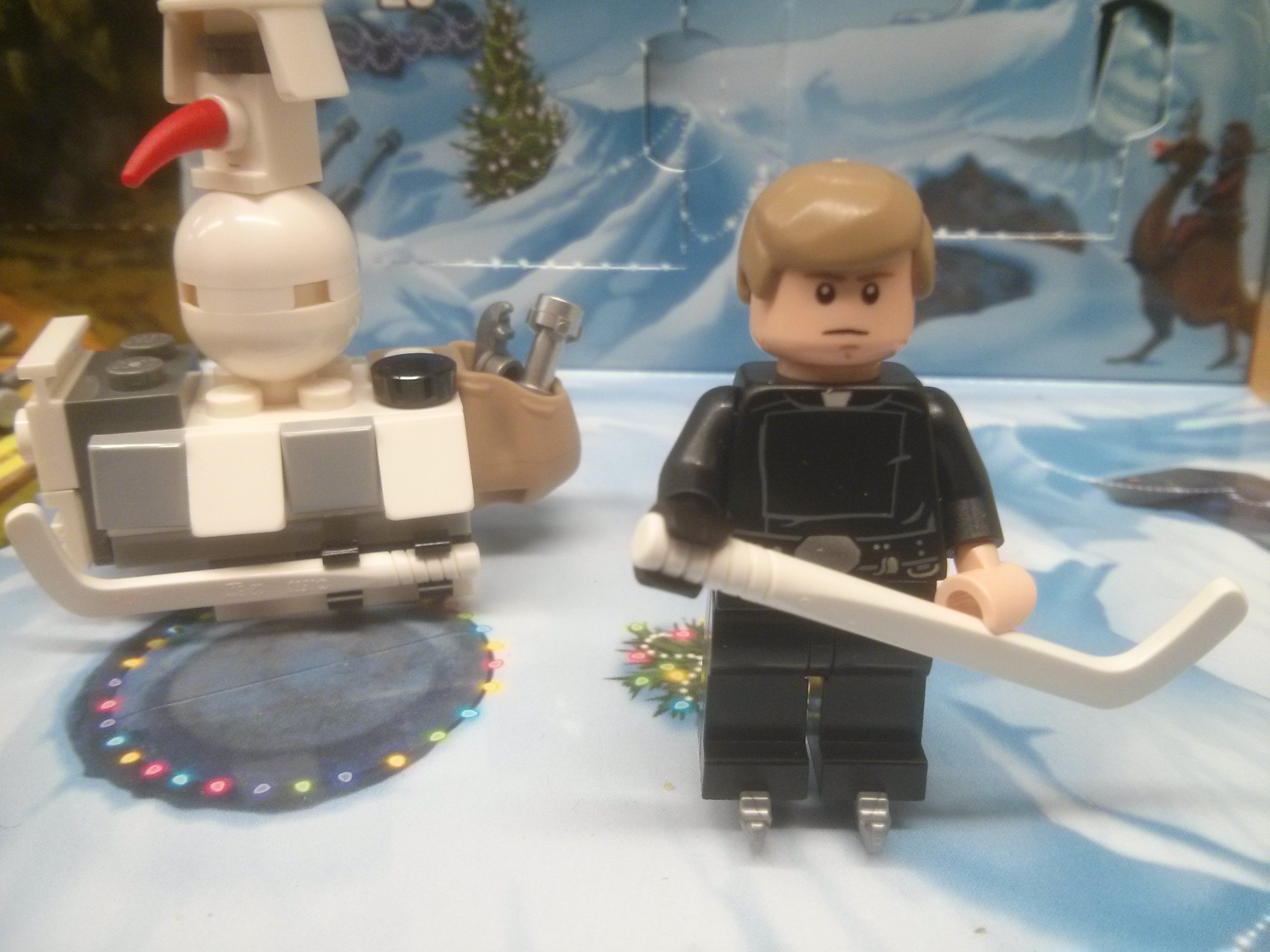 Having not only gained Olaf’s attention, but also an impromptu lecture about how “Star Wars” is “so last millennium, baby” and the future is in Ice and crossover movies, “like, um, ‘Star Wars Frozen'”, Luke trades his father’s lightsaber for a pair of ice skates and a hockey stick, determined to hone his Jedi Hockey skills (puck telekinesis, anyone?) for the musical “Disney On Ice: Star Wars” that Olaf makes him certain is just around the corner.